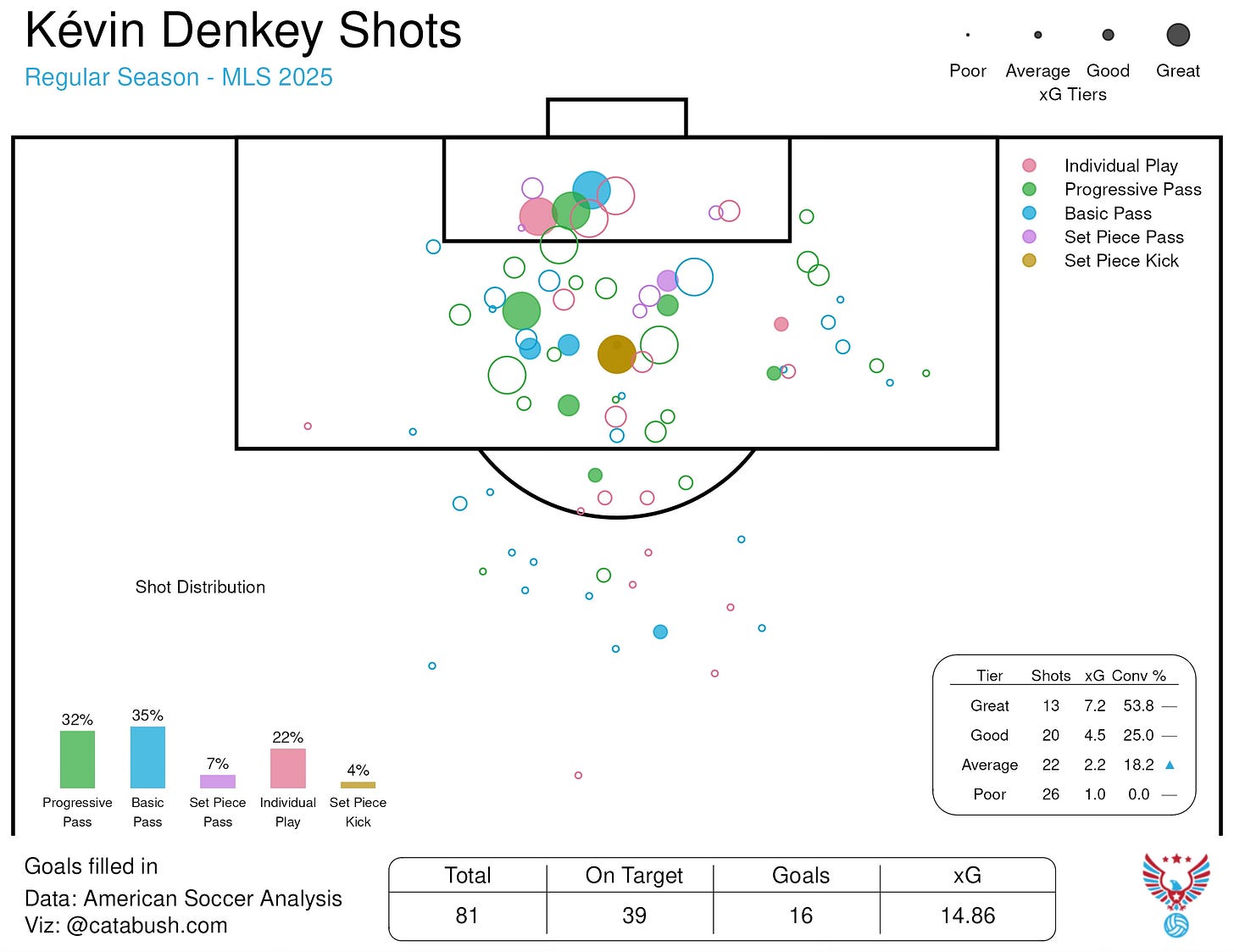 If the goal of the offseason is to generate more xG, the biggest beneficiary should be the team’s best striker: Kévin Denkey.