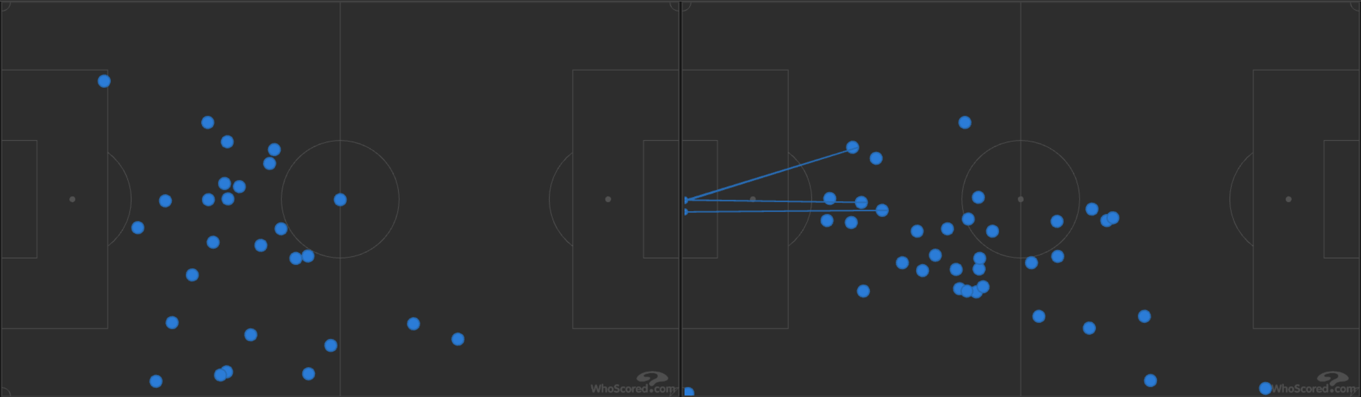 Even though there were positives in the second half, it’s hard to win a game when you concede 12 shots and 1.85 xG in a half while producing 5 shots and 0.23 xG yourself. Hopefully, Bucha and Nwobodo will be back in action next week but Sunday, especially the first half, doesn’t inspire a lot of confidence in the Orange and Blue’s upside relying on its midfield depth.