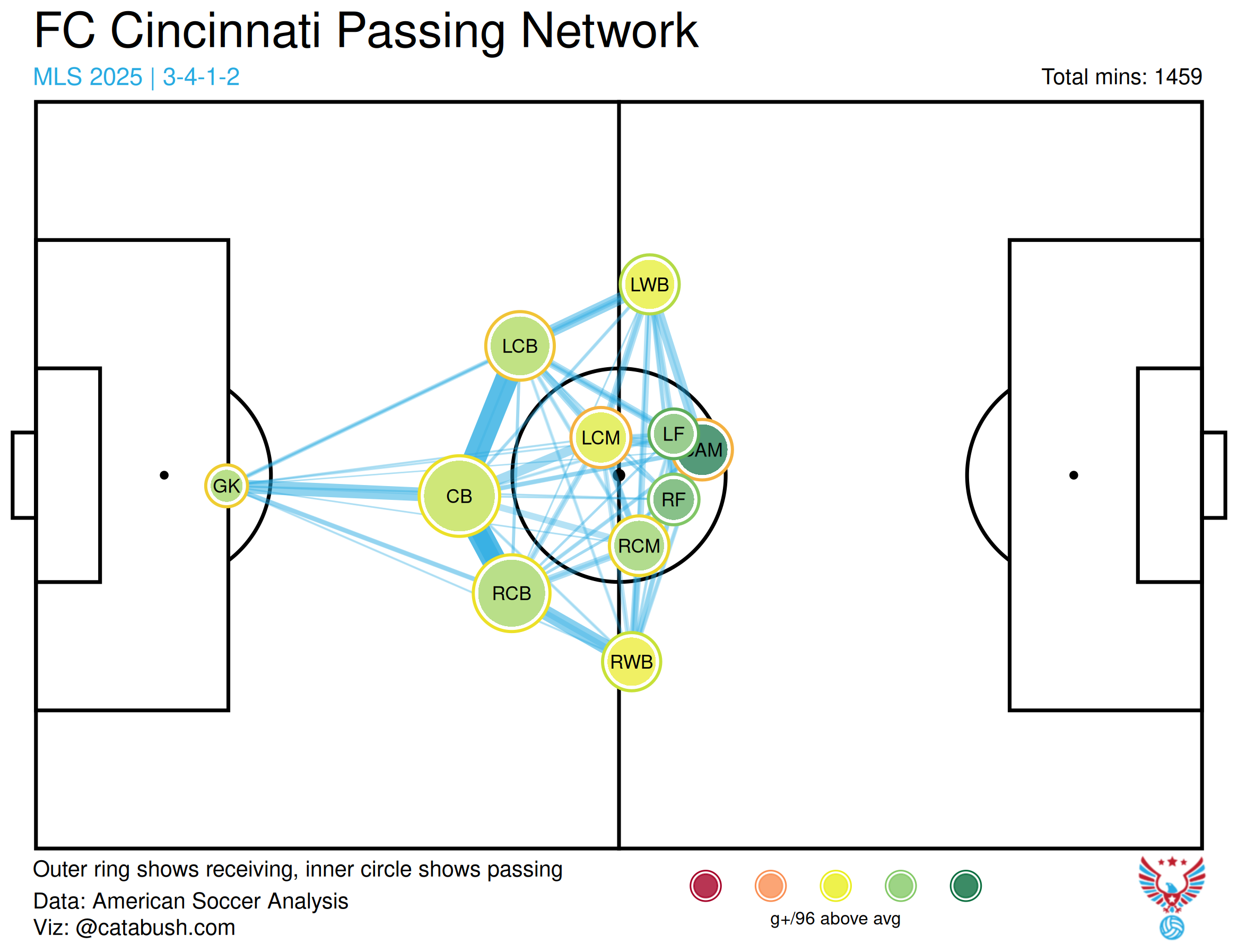 When the ball was in the final third, FCC’s wing backs weren’t dangerous enough to offer much of a threat. Per FBref, Engel and Yedlin combined to create 0.19 expected assisted goals (xAG) per 90 minutes in 2025. The previous season, FCC’s primary left wing backs, Orellano and Yamil Asad created 0.23 xAG and 0.27 xAG per 90. That’s a huge difference! Ender Echenique’s arrival was a positive, injecting some much needed juice into a stagnant FCC attack, but not at the same level as Barreal, Orellano, or Asad. Getting him into that tier of creation will be key to 2026 and beyond if Noonan and company decide to stick with this general structure.