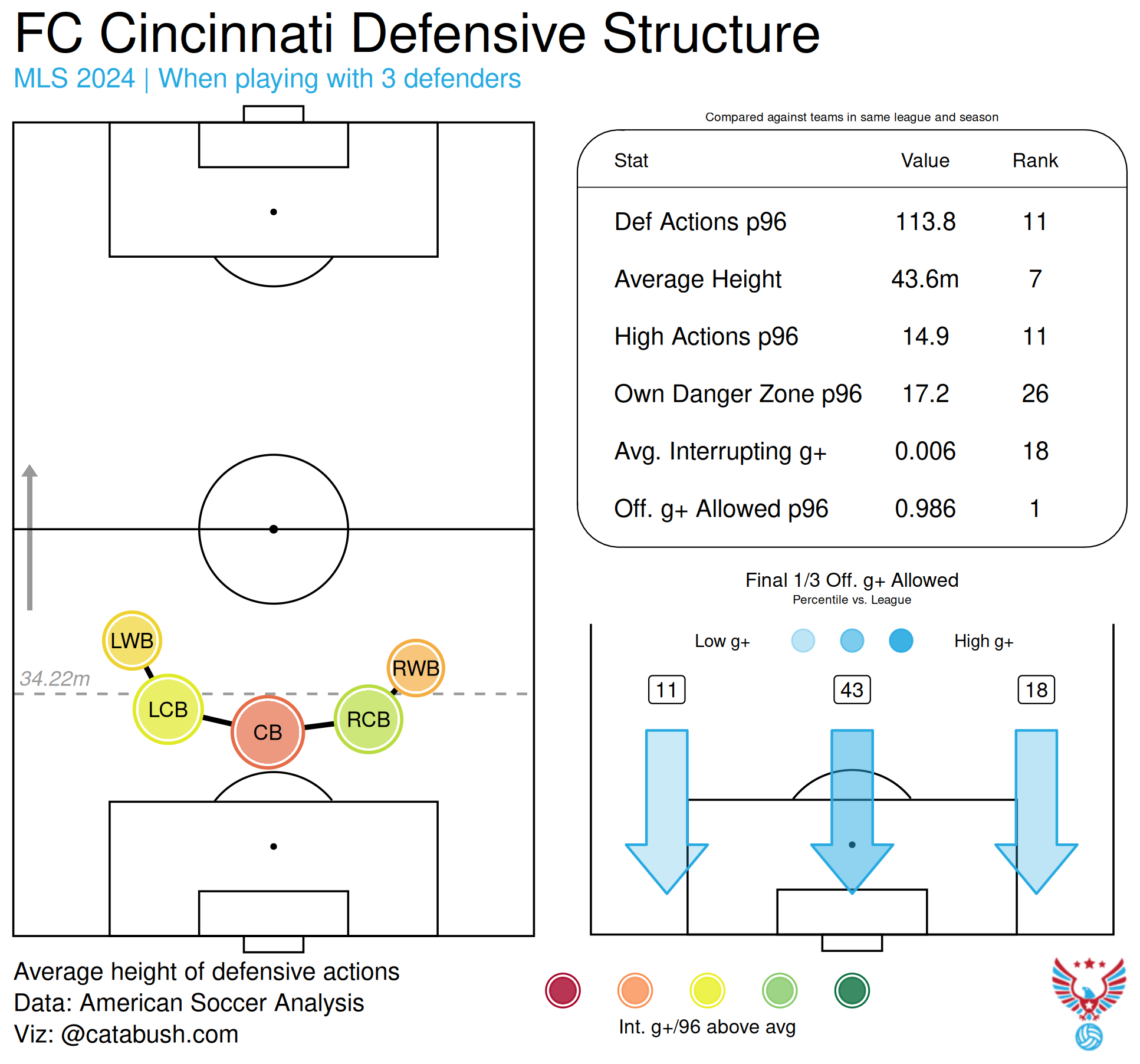 Quick refresher: FC Cincinnati outperformed its underlying numbers - and the eye test - en route to a second place finish in the Supporter’s Shield. This week, let’s dig deeper into what happened on the field, what went right, but mostly what went wrong, for FCC when it didn’t have the ball.
