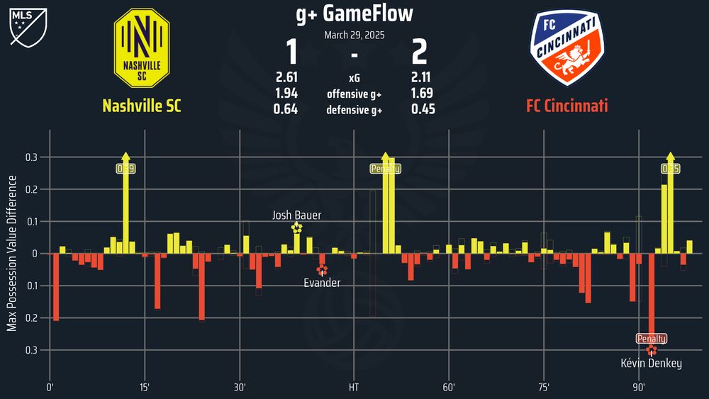 To my eye, Orellano had his best game of 2025 on Saturday, especially in the second half as he found more space to operate. Orellano finished the game with major contributions in ball progression, completing passes to teammates, receiving passes up the field, and just carrying it towards Nashville’s goal on the dribble himself.