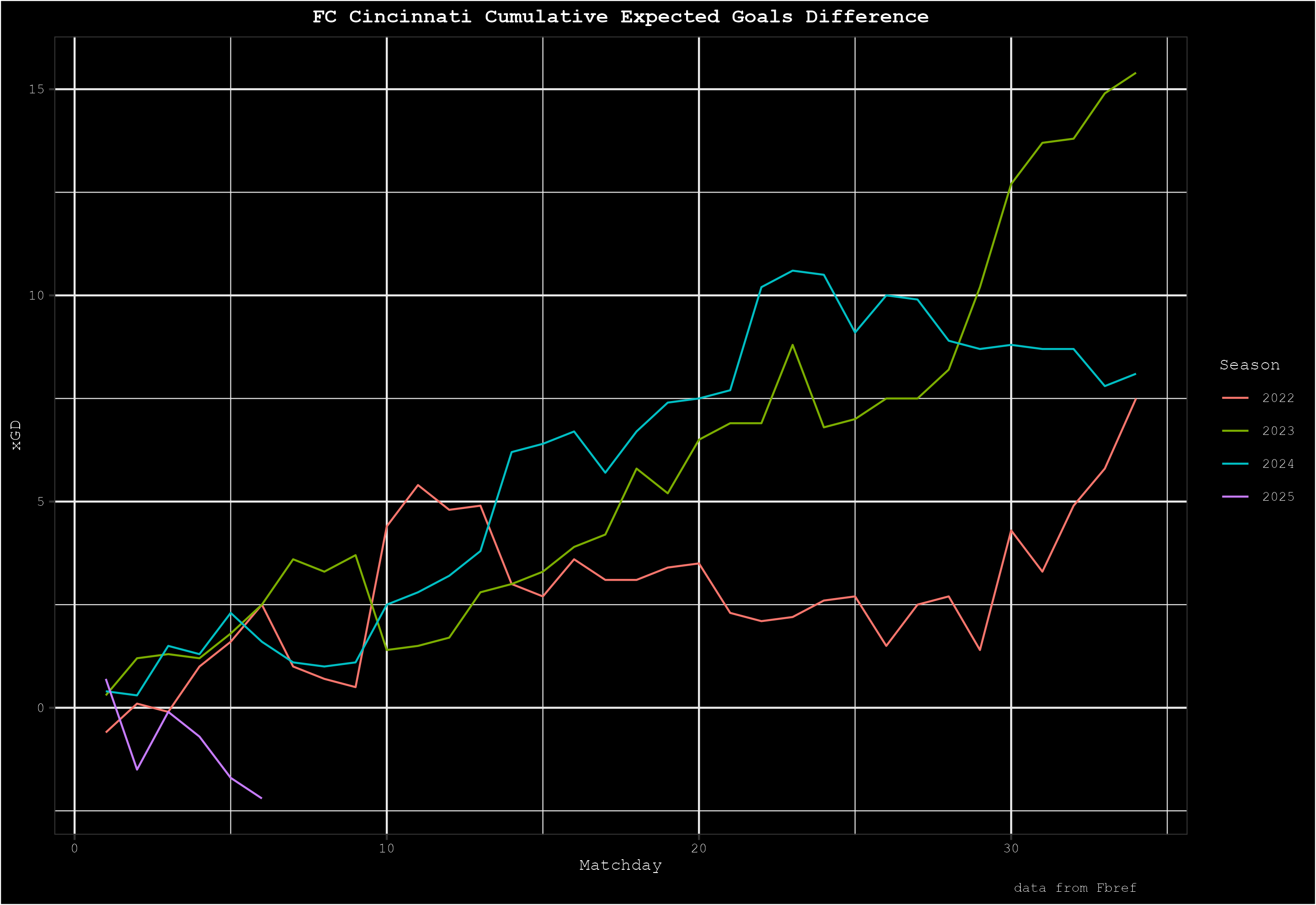 In FCC’s other four league games, the team’s expected goals difference (xGD) is a combined -4.3. Yes, the sample size is too small to be drawing real conclusions but it’s a worrying trend. The start to the 2025 season is the worst in Pat Noonan’s managerial tenure by expected goals difference.