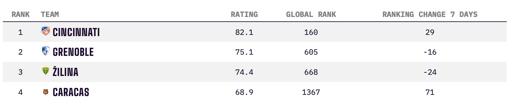 Opta’s Team Power Rankings aren’t perfect but they provide a window into league and team strength. FCC is ranked much more highly by Opta, which shouldn’t really be a surprise.