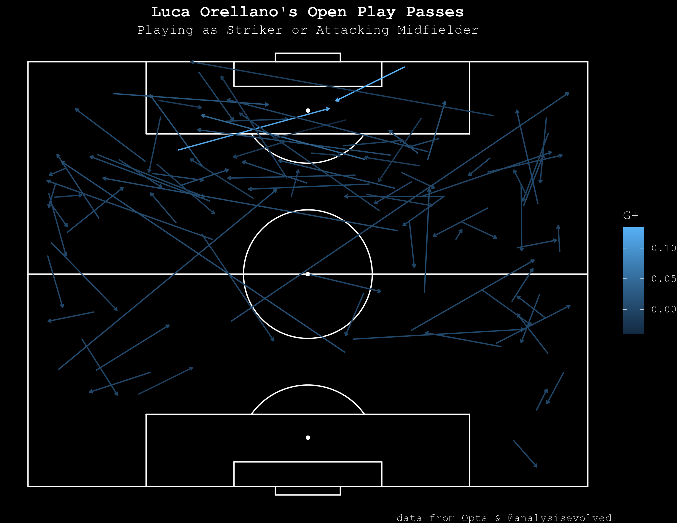 That Orellano’s 0.12 G+/96 as a wingback would also be the second best number in the league is a testament to how dangerous he was operating in from that position, too.