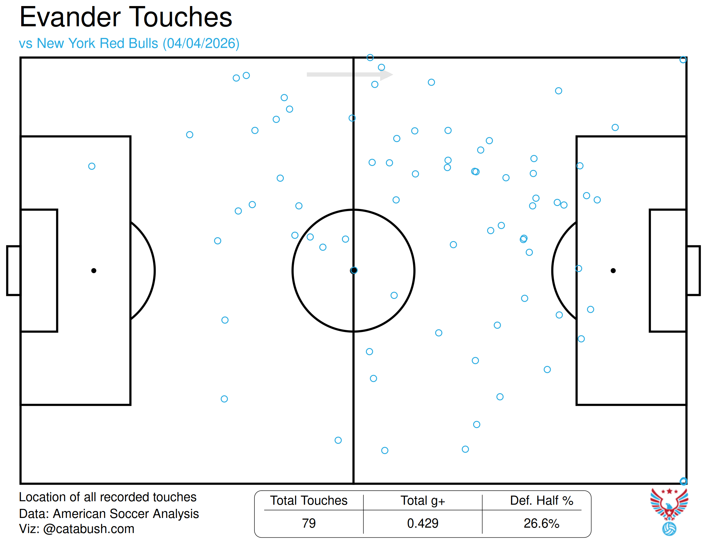 Julian Hall's opening goal for the Red Bulls was about as clear of a chance as you'll see in the run of the play. But NYRB's next two goals, a free kick from Emil Forsberg, and an own goal coming off Kyle Smith, were far less clear cut. Still, the Orange and Blue were chasing pretty much the whole game. Even if they generated more xG on the night, the game, which was already pretty wide open from the start, became more stretched.