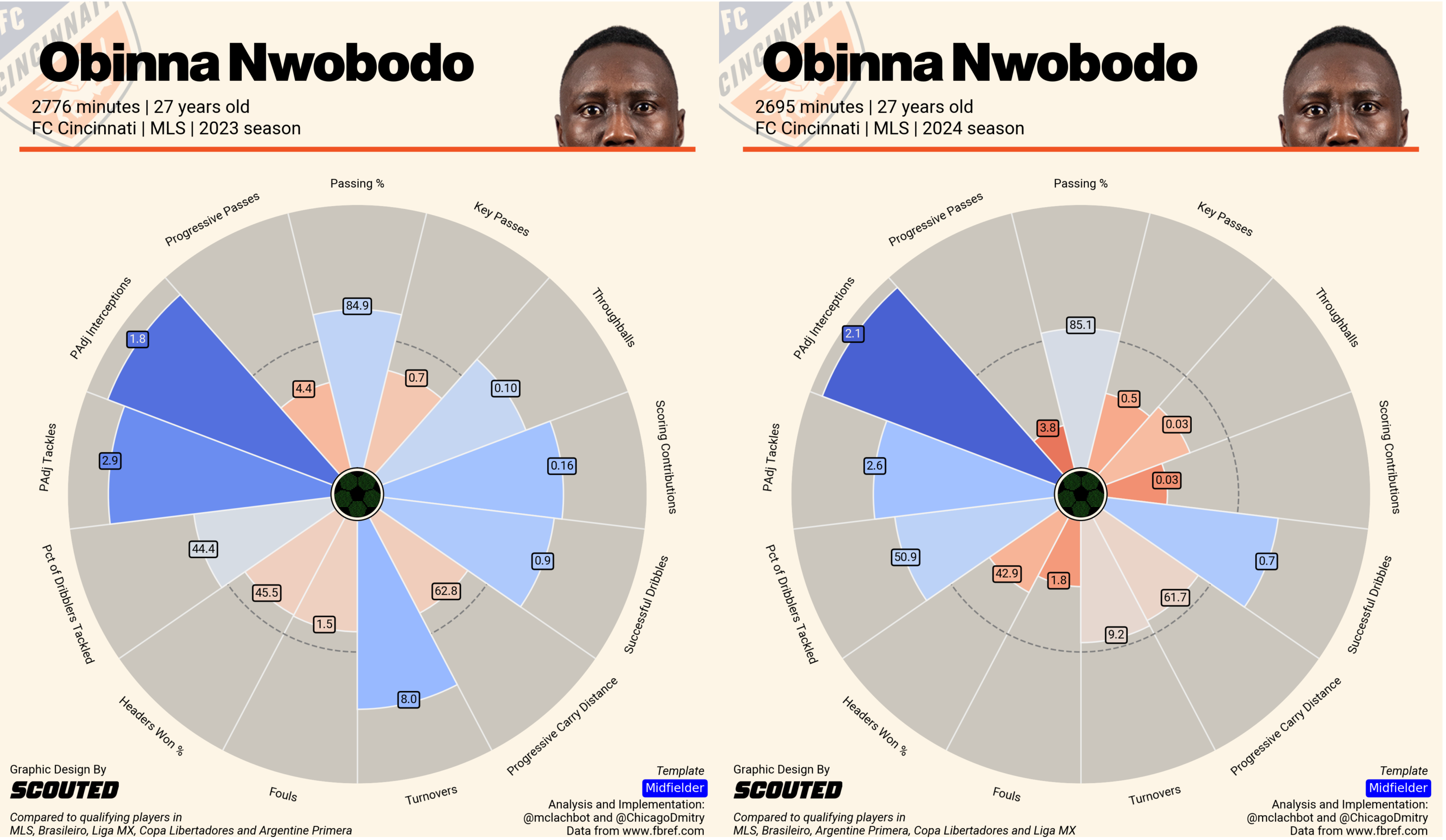 Can a team with Nwobodo and Bucha anchoring the center of the field generate enough passing to succeed in possession? In a season when FCC controlled possession more than ever, Nwobodo did less to move the ball forward into truly dangerous areas. Even though Nwobodo finished fourth on FCC in completed passes into the final third, many of those were to Acosta in that part of the field familiar to anyone who even occasionally watches the Orange and Blue: somewhere between the left wing and left half-space in front of the penalty area. Letting Lucho dictate play from that part of the field has been an effective attacking plan for years but what Obi’s final third passing looks like without that option remains to be seen.